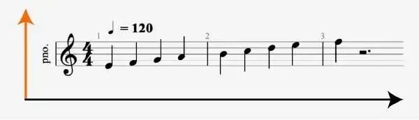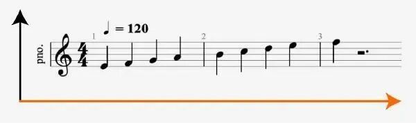 Что показывает горизонтальная ось нотного стана? нотный стан в виде условного графика