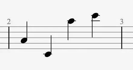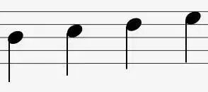 Что показывает рисунок нот на линии, в промежутке и снова на линии по вертикали вверх?
