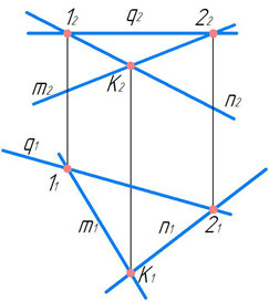 Проекции двух взаимно пересекающихся прямых линий задают положение плоскости в пространстве