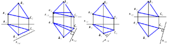 Четырехугольник АВСD проецируется на одну из плоскостей проекций в истинном виде в случае