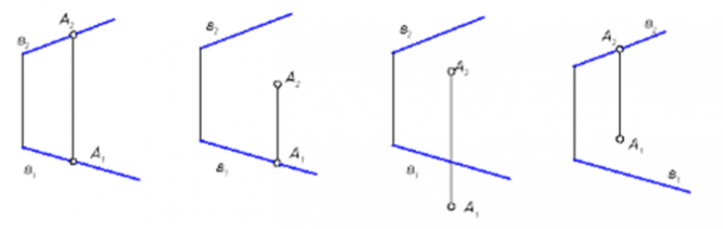 Чертеж фронтально конкурирующих точек показан на рисунке