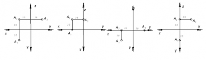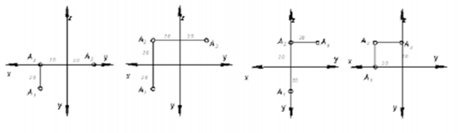 Точке А с координатами (20, 20, 0) соответствует рисунок