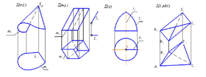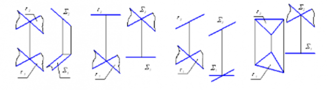 Случай проницания двух пересекающихся поверхностей изображен на чертеже