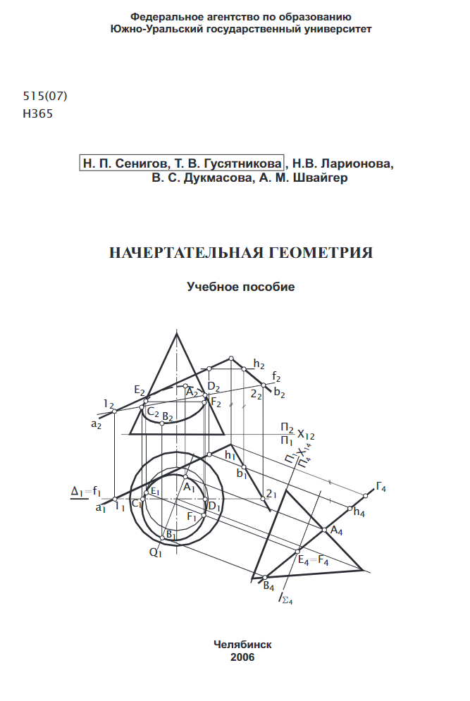 Для студентов МГТУ им. Н.Э.Баумана по предмету Начертательная геометрияН.П. Сенигов, Т.В. Гусятникова, Н.В. Ларионова, В.С. Дукмасова, А.М. Швайгер - Начертательная геометрияН.П. Сенигов, Т.В. Гусятникова, Н.В. Ларионова, В.С. Дукмасова, А.М. Швайгер - Начертательная геометрия