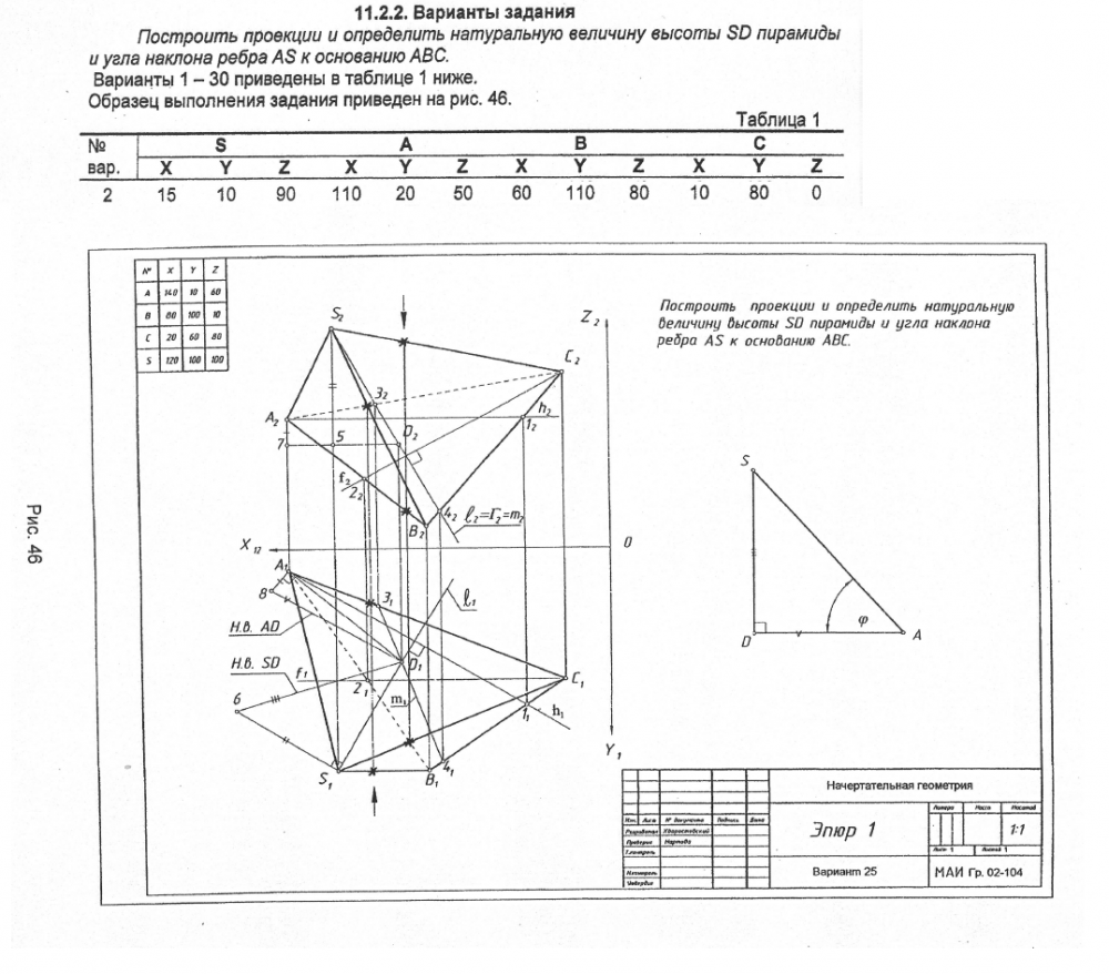 Для студентов МАИ по предмету Начертательная геометрияВариант №2 - Эпюр №1Вариант №2 - Эпюр №1