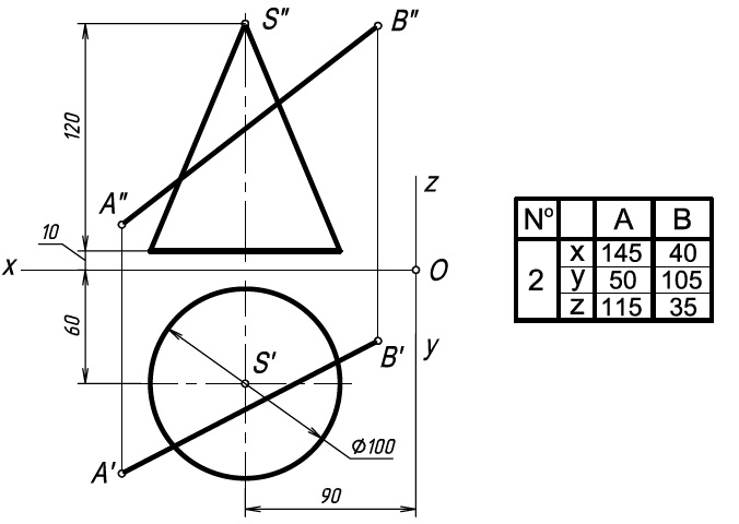 1. Построить проекции точек пересечения прямой АВ с заданными поверхностями.
