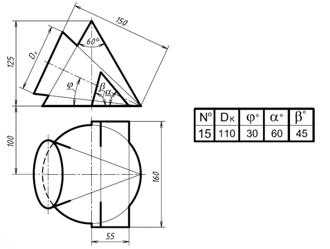 • Задача 4. Построить проекции линий пересечения заданных поверхностей.
