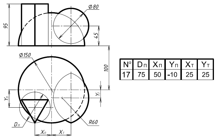 • Задача 4. Построить проекции линий пересечения заданных поверхностей.