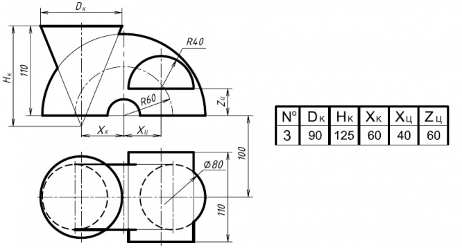 • Задача 4. Построить проекции линий пересечения заданных поверхностей.