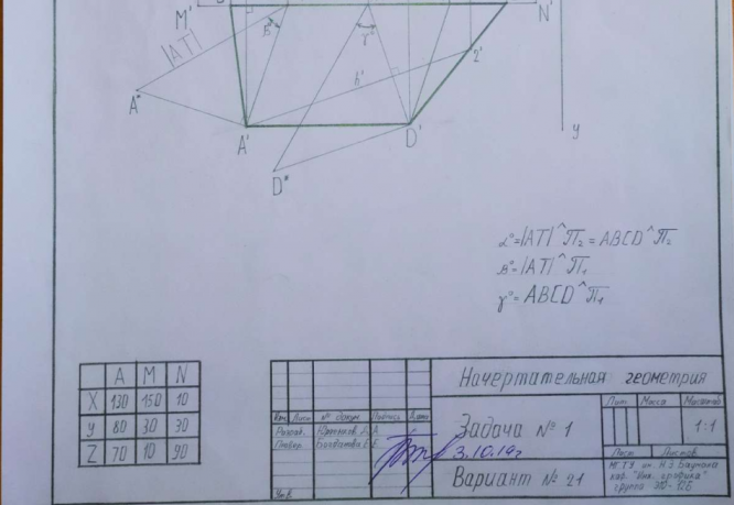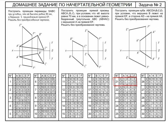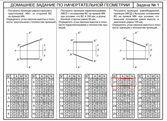 Домашнее задание по Начертательной геометрии (для всех факультетов, кроме ИУ1, 2, 3, 5, 6, РК6, МТ9)