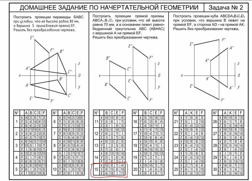 Домашние задания вариант 15 по курсу "Начертательная геометрия" (для всех факультетов, кроме ИУ, РК6, МТ9) - Задач 1+2+3+4+5