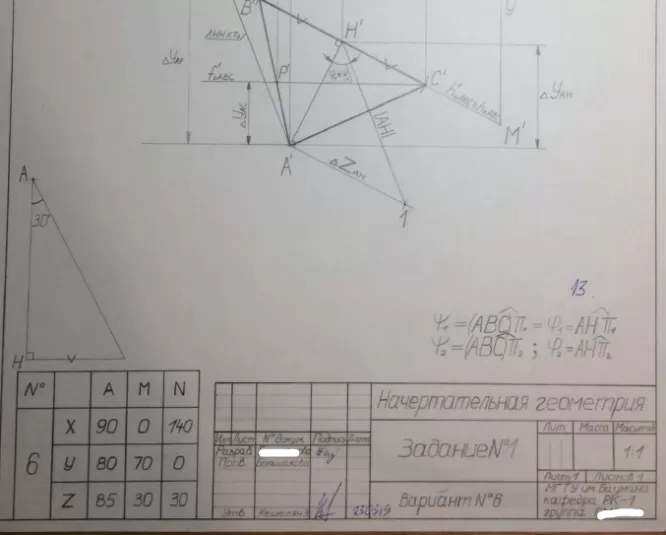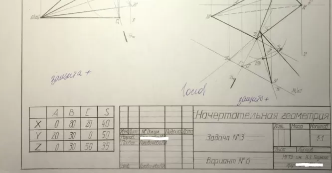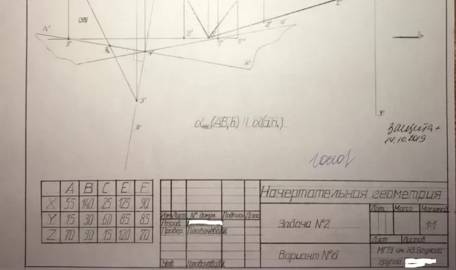Домашнее задание по Начертательной геометрии (для всех факультетов, кроме ИУ1, 2, 3, 5, 6, РК6, МТ9)