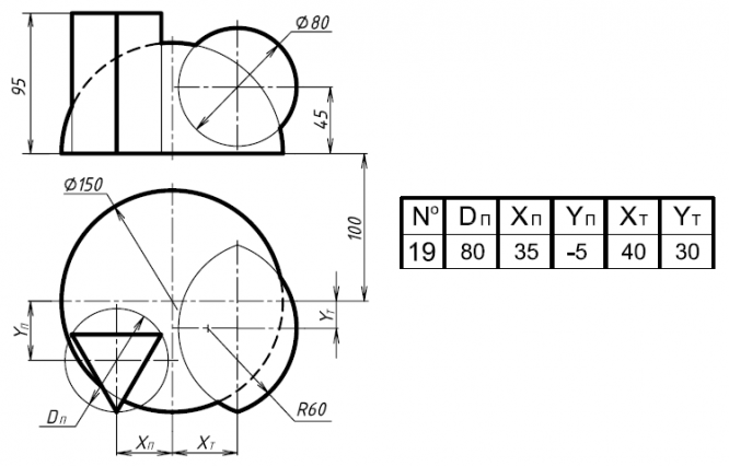 • Задача 4. Построить проекции линий пересечения заданных поверхностей.