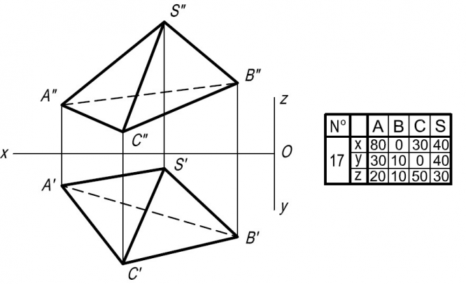 - Задача 3. Дана пирамида SABC. Определить, применяя способы преобразования чертежа: