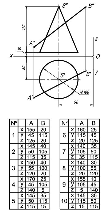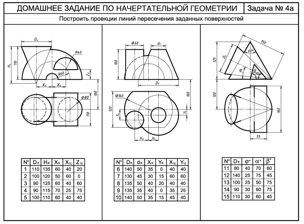 Домашнее задание по курсу "Начертательная геометрия" (для всех факультетов, кроме ИУ1, 2, 3, 5, 6, РК6, МТ9)