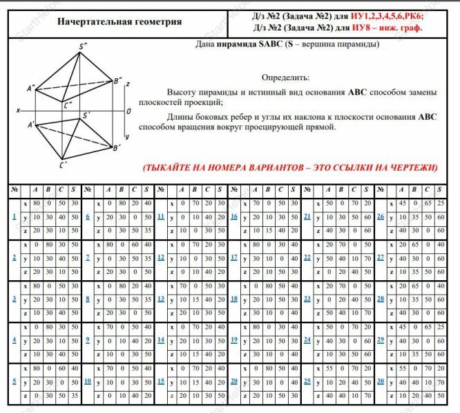 Домашнее задание по Начертательной геометрии (для ИУ1 (бакалавры), ИУ3, 5, 6, РК6, МТ9, БМТ1-13Б)