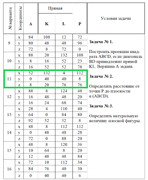 ПРЕОБРАЗОВАНИЕ ЭПЮРА (Точка, прямая, плоскость). Вариант №11. 2020г.