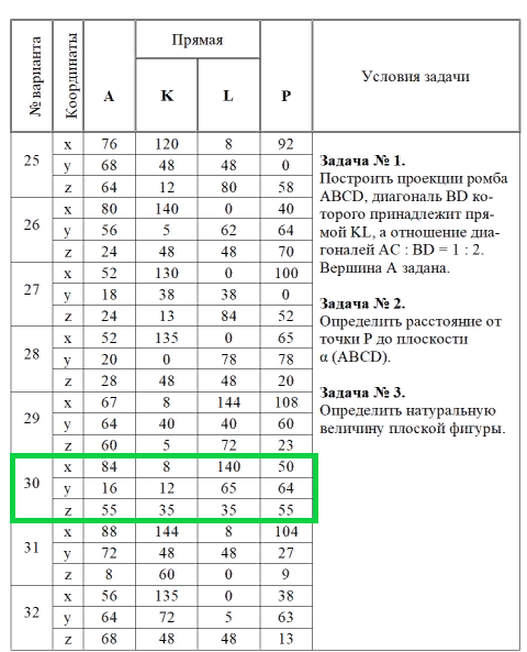 ПРЕОБРАЗОВАНИЕ ЭПЮРА (Точка, прямая, плоскость). Вариант №30. 2020г.