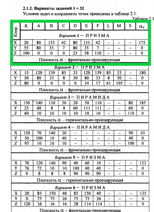 а) по заданным координатам его вершин (варианты задания 1/32)