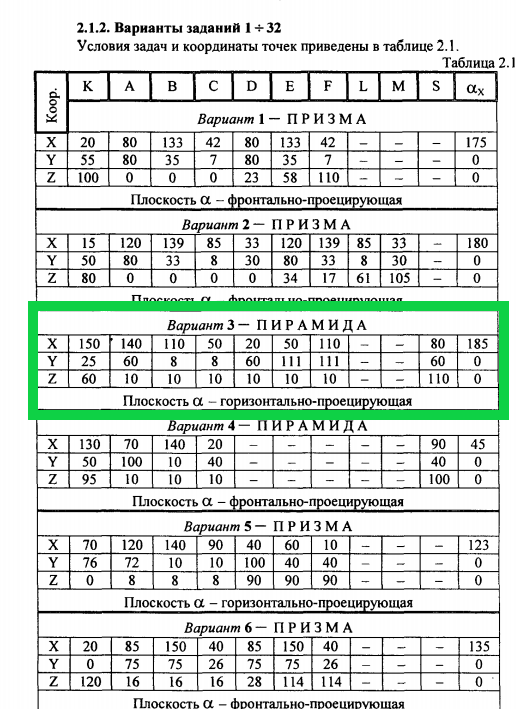 а) по заданным координатам его вершин (варианты задания 1/32)