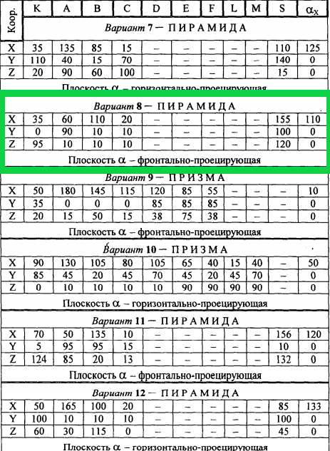 а) проходящей через заданную точку K и перпендикулярной к одной из плоскостей проекций ( варианты заданий 1/32)