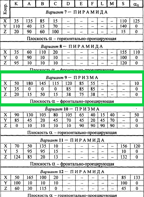 а) проходящей через заданную точку K и перпендикулярной к одной из плоскостей проекций ( варианты заданий 1/32)