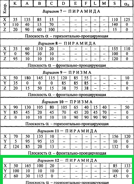 а) проходящей через заданную точку K и перпендикулярной к одной из плоскостей проекций ( варианты заданий 1/32)
