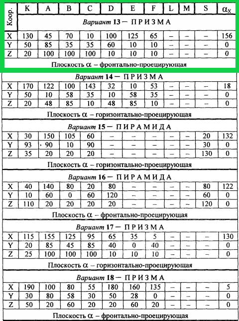 а) по заданным координатам его вершин (варианты задания 1/32)