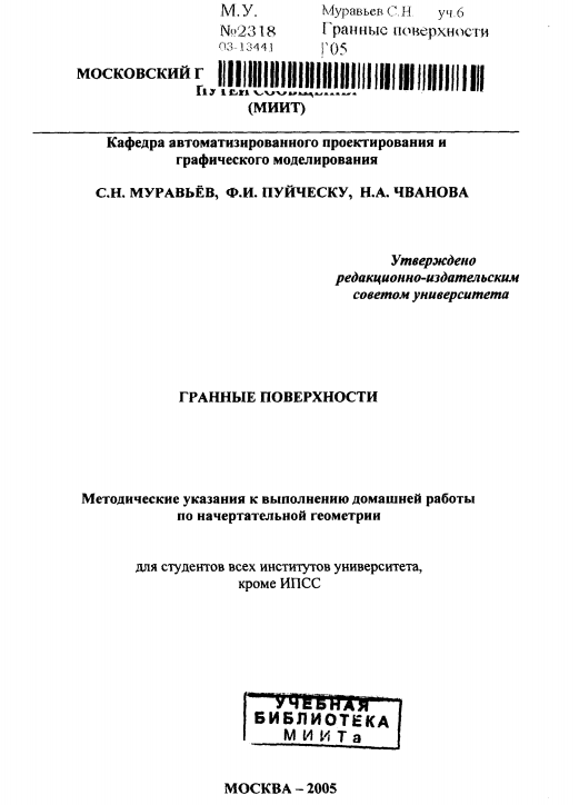Гранные поверхности №2318. Вариант №15. РУТ (МИИТ) 2005г.