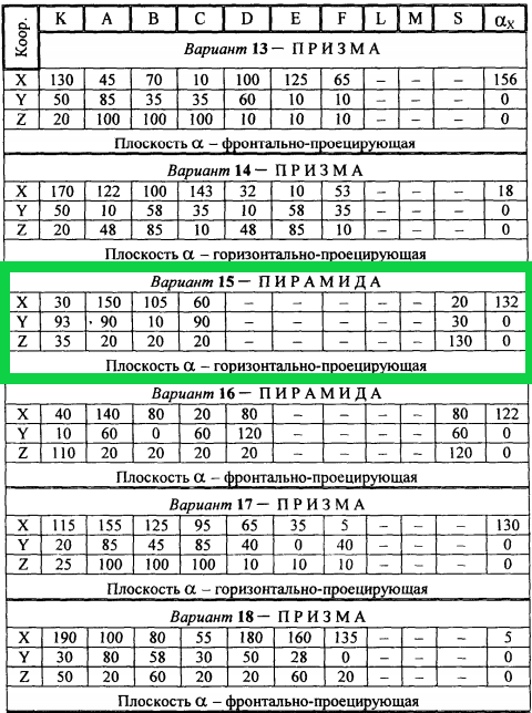 а) по заданным координатам его вершин (варианты задания 1/32)