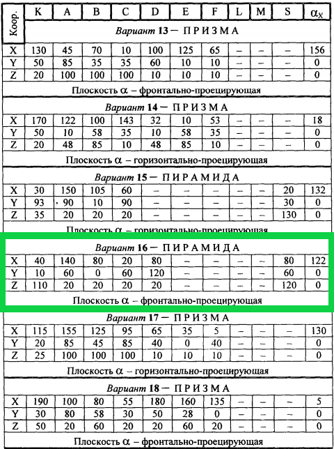 а) по заданным координатам его вершин (варианты задания 1/32)