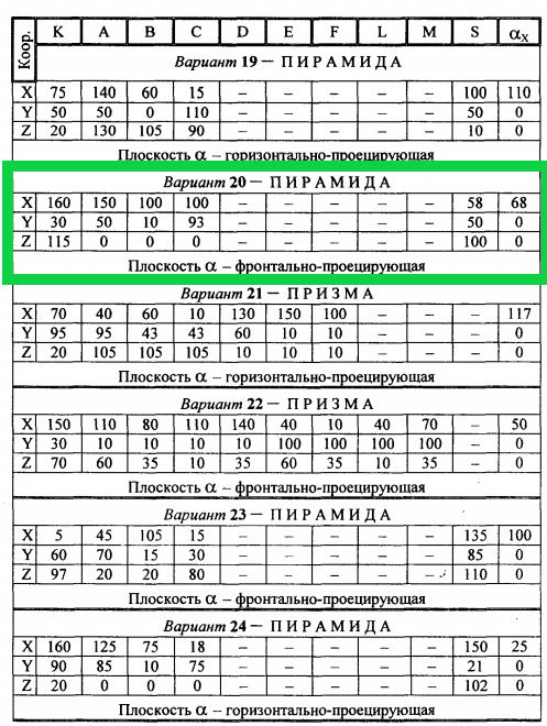а) по заданным координатам его вершин (варианты задания 1/32)