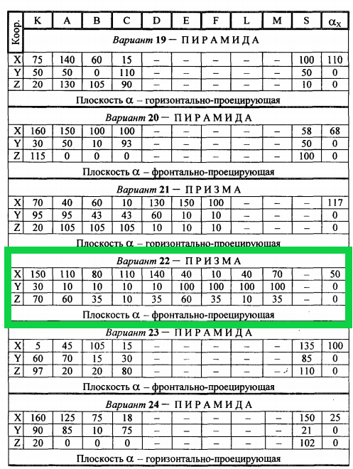 а) по заданным координатам его вершин (варианты задания 1/32)