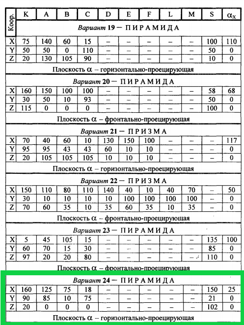 а) проходящей через заданную точку K и перпендикулярной к одной из плоскостей проекций ( варианты заданий 1/32)