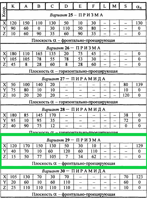 а) проходящей через заданную точку K и перпендикулярной к одной из плоскостей проекций ( варианты заданий 1/32)