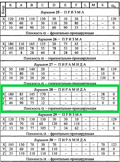 а) проходящей через заданную точку K и перпендикулярной к одной из плоскостей проекций ( варианты заданий 1/32)
