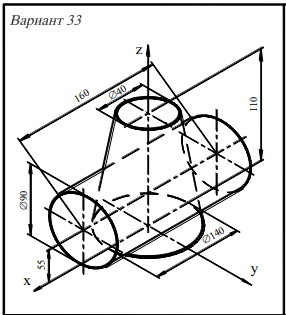 Комментарии: Ортогональный чертёж пересекающихся поверхностей (варианты 33-64) выполняют на листе ватмана, расположенном вертикально