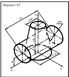 Комментарии: Ортогональный чертёж пересекающихся поверхностей (варианты 33 - 64) выполняют на листе ватмана, расположенном вертикально .
