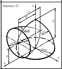 Комментарии: Ортогональный чертёж пересекающихся поверхностей (варианты 33 - 64) выполняют на листе ватмана, расположенном вертикально.
