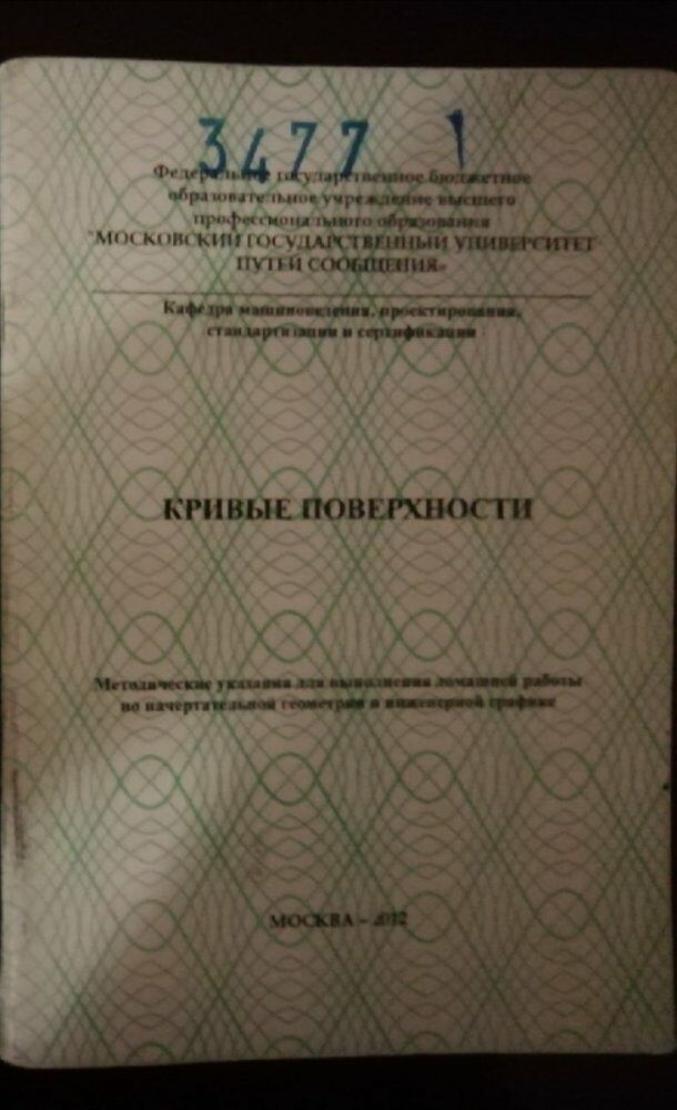 Методичка по НГ. Кривые поверхности 2018г. РУТ(МИИТ)/Кривые поверхности №3477 2012г. РУТ(МИИТ). Вариант №55.