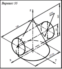 Комментарии: Ортогональный чертёж пересекающихся поверхностей (варианты 33 - 64) выполняют на листе ватмана, расположенном вертикально.