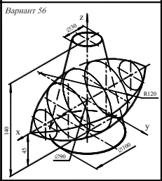 Комментарии: Ортогональный чертёж пересекающихся поверхностей (варианты 33 - 64) выполняют на листе ватмана, расположенном вертикально.