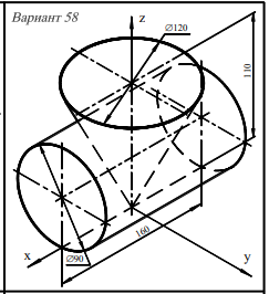 Комментарии: Ортогональный чертёж пересекающихся поверхностей (варианты 33 - 64) выполняют на листе ватмана, расположенном вертикально.