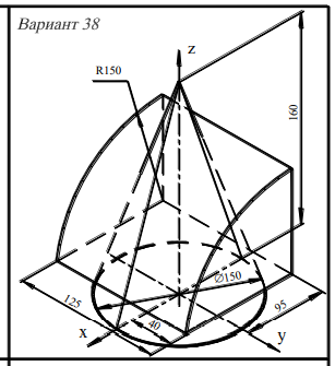 Комментарии: Ортогональный чертёж пересекающихся поверхностей (варианты 33 - 64) выполняют на листе ватмана, расположенном вертикально , а развёртку указанной преподавателем поверхности – на листе ватмана, расположенном горизонтально