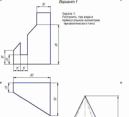 Построить три вида и прямоугольную изометрию призматического тела