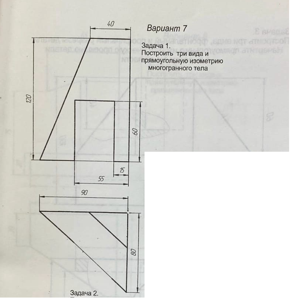 Построить три вида и прямоугольную изометрию многогранного тела
