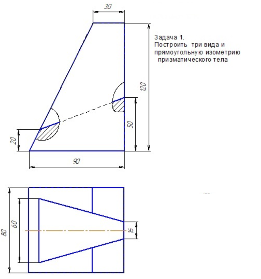 В инженерной графике раздел «Проекционное черчение» является связующим звеном между начертательной геометрией и машиностроительным черчением. Здесь закрепляются полученные в начертательной геометрии навыки построения ортогональных и аксонометрических изображений геометрических тел, имеющих вырезы или отверстия, а также композиций этих тел. Рассматриваются особенности построения видов, разрезов, сечений геометрических тел, а также правила нанесение размеров на ортогональных чертежах. В настоящем пособии рассмотрены примеры построения ортогональных и аксонометрических изображений гранных тел (пирамида, призма), тел вращения (цилиндр, конус), у которых имеется вырез или сквозное отверстие, а также сочетания (композиции) указанных тел в едином целом, условно названном «деталью».