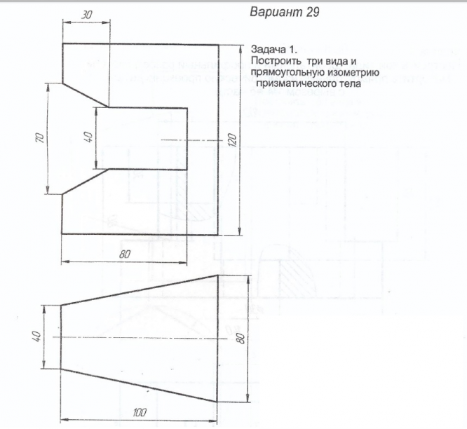 В инженерной графике раздел «Проекционное черчение» является связующим звеном между начертательной геометрией и машиностроительным черчением. Здесь закрепляются полученные в начертательной геометрии навыки построения ортогональных и аксонометрических изображений геометрических тел, имеющих вырезы или отверстия, а также композиций этих тел. Рассматриваются особенности построения видов, разрезов, сечений геометрических тел, а также правила нанесение размеров на ортогональных чертежах. В настоящем пособии рассмотрены примеры построения ортогональных и аксонометрических изображений гранных тел (пирамида, призма), тел вращения (цилиндр, конус), у которых имеется вырез или сквозное отверстие, а также сочетания (композиции) указанных тел в едином целом, условно названном «деталью».