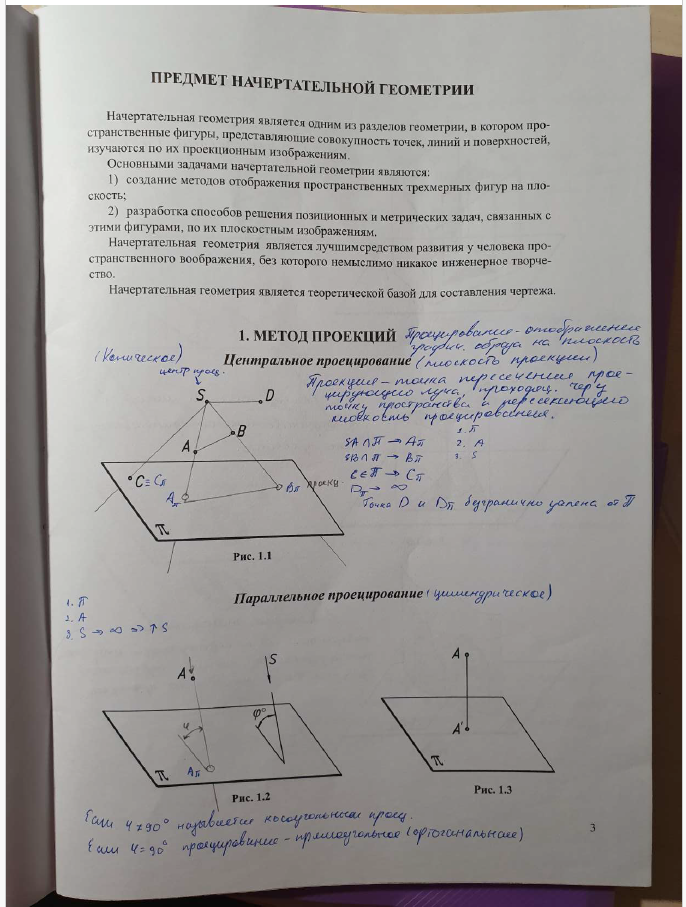 Для студентов МГТУ им. Н.Э.Баумана по предмету Начертательная геометрияЛекционная тетрадь с пометками от рукиЛекционная тетрадь с пометками от руки