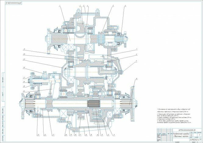 Чертеж. Раздаточная коробка КамАЗ - 5511. Выполнена в Kompas V20.